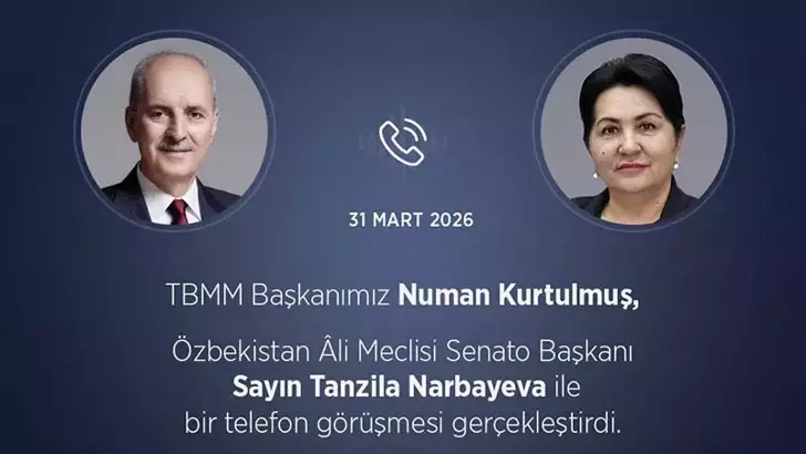 TBMM Başkanlığı'ndan yapılan açıklamaya göre; Meclis Başkanı Numan Kurtulmuş, Özbekistan Ali Meclisi Senato Başkanı Tanzila Narbayeva ile telefon görüşmesi gerçekleştirdi.
