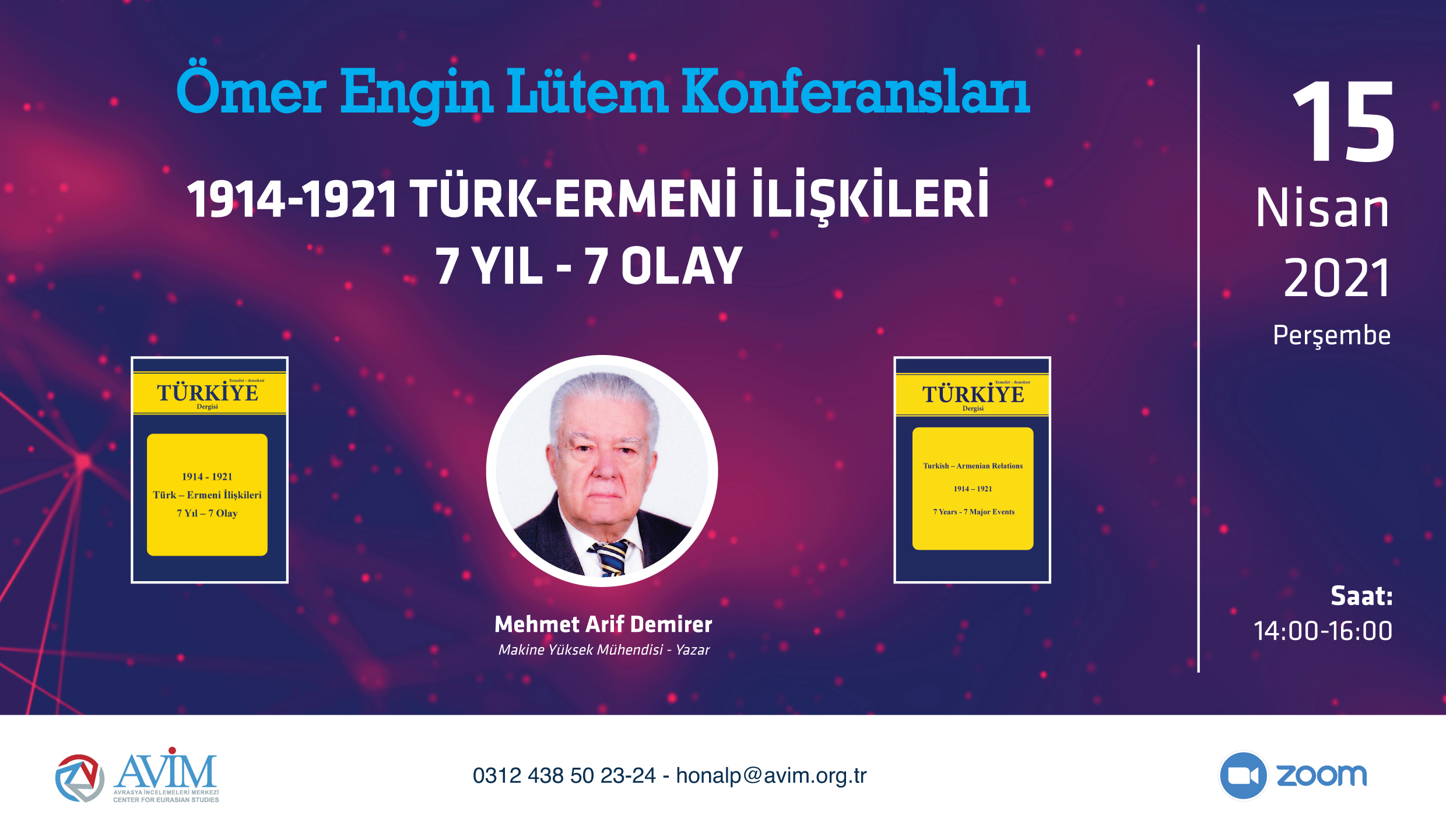6 Mayıs 2021 Perşembe günü, Avrasya İncelemeleri Merkezi (AVİM) ve Diplomasi Araştırmaları Derneği (DARD) iş birliğiyle “Dezenformasyon, 1915 Olayları Ve ABD Başkanı Biden’ın 24 Nisan Açıklaması” başlıklı bir webinar düzenlenecektir.