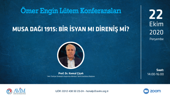 Avrasya İncelemeleri Merkezi (AVİM), 22 Ekim 2020 tarihinde Ömer Engin Lütem Konferansları kapsamında Prof. Dr. Kemal Çiçek’in konuşmacı olarak yer aldığı “Musa Dağı 1915: Bir İsyan mı Direniş mi?” başlıklı konferans çevrimiçi olarak düzenlemişti.