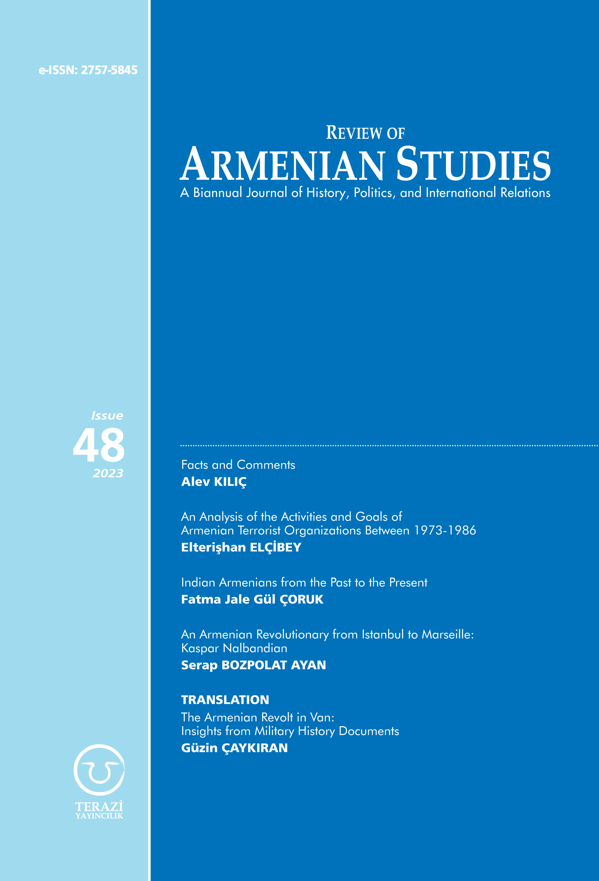 Review of Armenian Studies dergisinin yeni yayınlanan 48’inci sayısında 5 makale yer almaktadır.